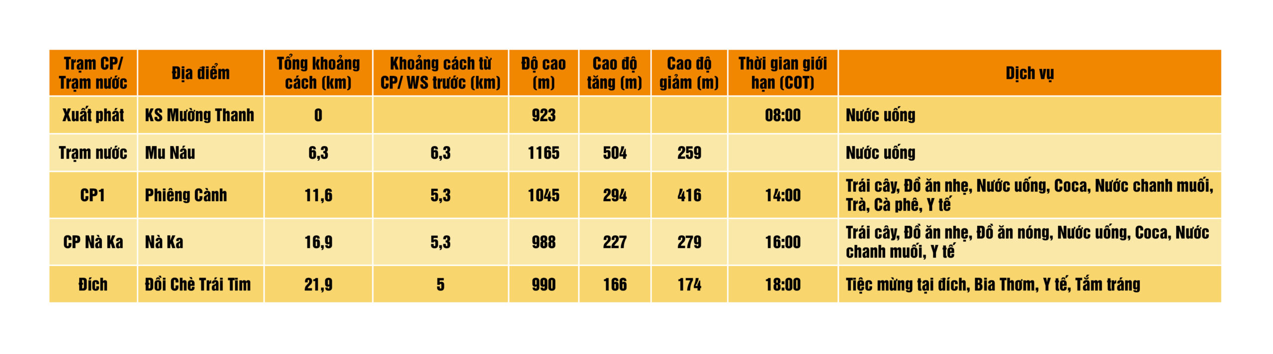 Thời gian giới hạn: 14:00 tại CP1 – 16:00 tại CP Nà Ka – 18:00 tại ĐÍCH